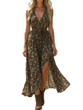 Designed with a sexy V-neckline and slit hem, this dress brings a touch of feminine elegance while keeping things cool and casual. The delicate spaghetti straps and fit-and-flare silhouette enhance your natural shape, creating a look that’s both effortless and eye-catching.